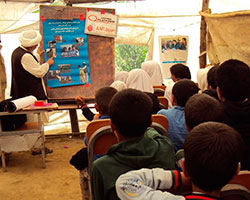 数十年に亘る紛争により、アフガニスタンでは今もなお地雷や不発弾の被害が発生しています。AAR Japan[難民を助ける会]は2002年1月からアフガニスタンで地雷対策活動を始め、現在は、カブール県とパルワーン県で地雷回避と、地雷被害者を含む障がい者への理解を深めるための講習会を行っています。また、パルワーン県では公立学校2校を対象として、対象校地域に住む障がい児の就学をサポートしています。