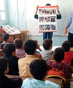 地域住民に地雷・不発弾や空爆から身を守る方法を教えています
