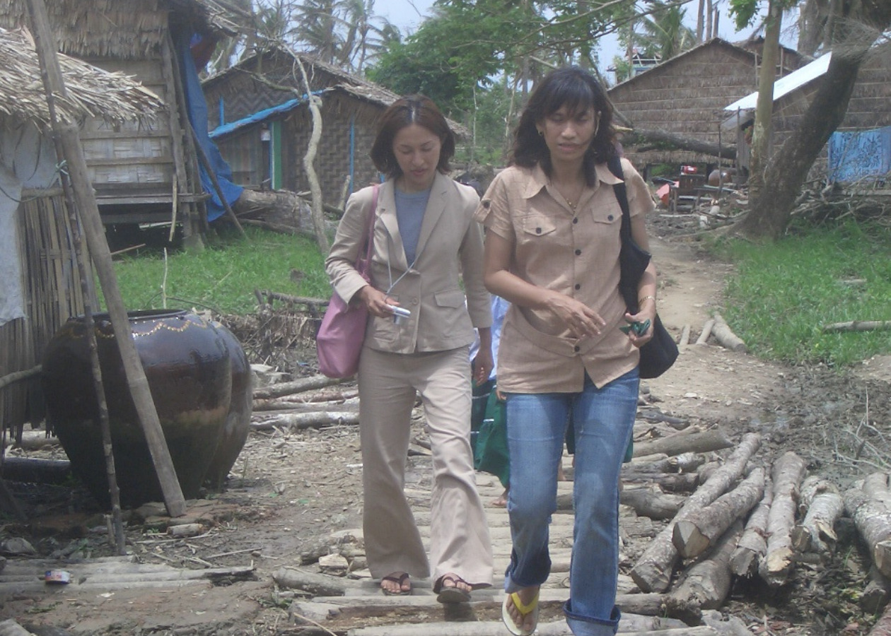 ミャンマーのサイクロン・ ナルギスは死者約14万人の大災害でしたが、当初は国連も国際NGOも現地に入れず、前駐在員からの「念のためビザを取っておくとよい」とのアドバイスで1年間有効なビザを取得していた私だけが現地入りできたのです。全く支援が届かない現場で、障がいのある方々が取り残されていた姿が忘れられません。そのままミャンマーにとどまり、緊急支援を統括しました。