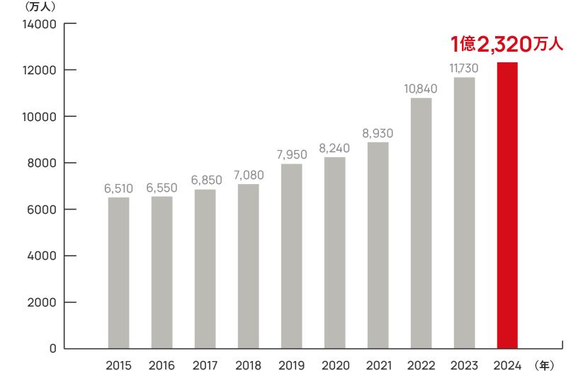 世界の難民・国内避難民は近年、増加の一途をたどっており、1億2,320万人に上ります(2024年末時点)。これは世界人口の約1.5%にあたり、日本の人口とほぼ同じです。国連難民高等弁務官事務所(UNHCR)の統計によると、その内訳は難民4,270万人、国内避難民7,350万人、庇護希望者840万人です。難民・避難民全体の40%を18歳未満の子どもが占めており、親を失った子どもたちも少なくありません。