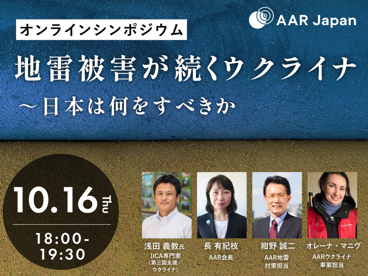 ウクライナの地雷問題に取り組んできたAAR Japan[難民を助ける会]は、日本で開催されるウクライナ地雷対策会議に先立ち、10月16日にオンラインシンポジウムを開催します。