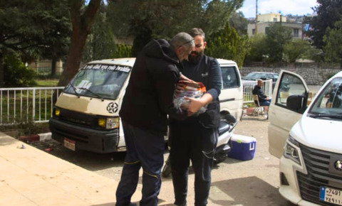 支援物資を受け取りに来た人々