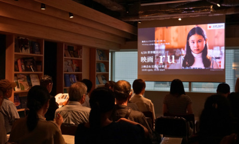オデットさん(右)に話を聞くメヘバ事務所の兼松結