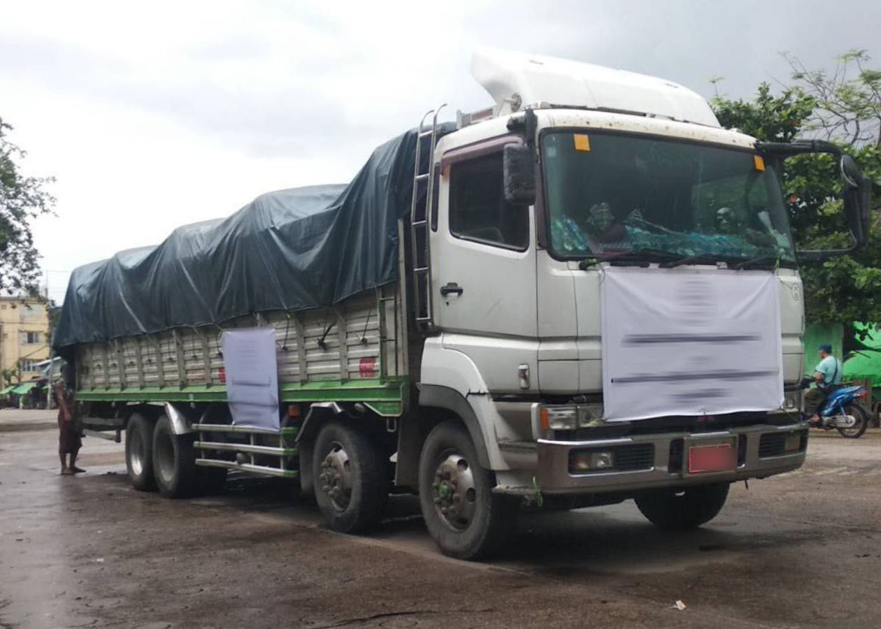 緊急支援物資を積んで被災地に向かうAARの現地協力団体のトラック=ミャンマー・ヤンゴンで2025年4月12日