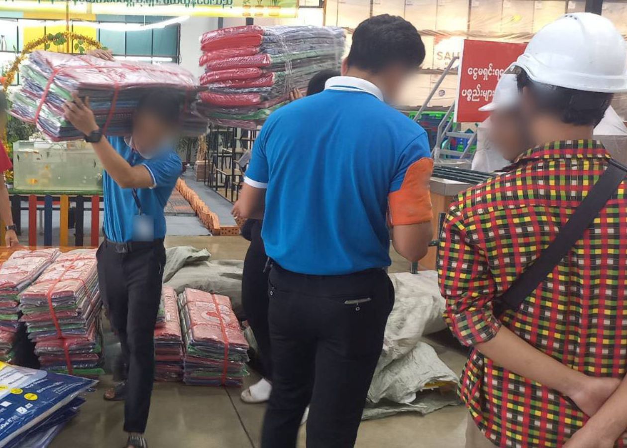 被災地で配付する蚊帳やマットを調達する現地協力団体職員=ヤンゴンで4月11日