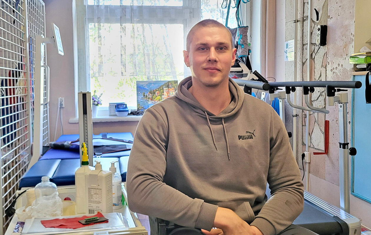 私は開戦初日からウクライナ軍に従軍していましたが、戦闘中に左足首を負傷し、足を上げることができなくなりました。AAR が支援する病院で、最新の機器を使用したリハビリに励んだ結果、体力と可動域を回復しつつあります。