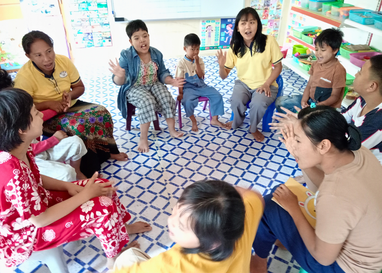 現地団体「NICE Foundation」が運営する障がい児のための教育施設で、笑顔で活動する子どもたち=マンダレー市内で2026年3月
