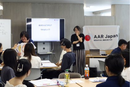 世界各地で支援活動に携わる経験豊かなAARスタッフが、国際協力に関する幅広いテーマを、映像などを使いながらで分かりやすく説明します。テーマ・内容・構成・講演・時間などはご希望に合わせて調整いたします。