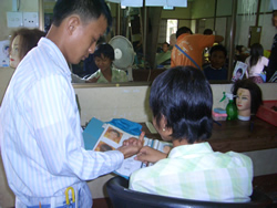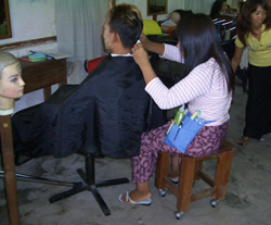 難民を助ける会では、ミャンマー(ビルマ)の最大都市ヤンゴン(ラングーン)において、2000年より障害者のための職業訓練校を運営しています。職業訓練校では、理容美容・洋裁の技術に加え、接客や会計についても学び、卒業後、仕事に就き自立して生活することを目指しています。また、卒業生向けに、より実践的な技術を身に付けるためのモデルショップの運営も行っています。今回は、理容美容クラスで発見した技術習得のための様々な工夫、そして洋裁モデルショップについて、ご紹介致します。