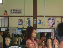 洋裁のモデルショップ「プリンセス」は、職業訓練校から車で10分ほどの中所得層が住む場所にあります。2007年12月から営業を開始しました。訓練校の卒業生2名により、今年7月には1ヵ月で40人・136件の注文をこなしました。移動をしやすい乾期には、流行のデザイン情報を把握するために、近くのお店に見学に行くそうです。