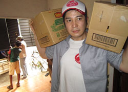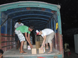 支援物資をトラックに積み込み、被災者の元へ