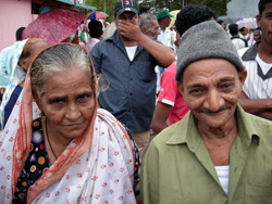 物資を受け取りに来た人の多くが女性や老人でした。数十キロにもなる物資を重そうに抱えながらも、笑みをこぼしてホッとした表情に、こちらも胸をなでおろしました。実は道中、物資を積んだトラックが故障し、急遽、新たなトラックに物資を積みかえるという作業が発生していたのです。