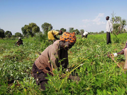 タレリ村の村人のほとんどは農業に従事しています。モロコシ(ソルガム)をはじめとして、キビやトウモロコシなどの乾燥に強い穀物のほか、ピーナッツ、大豆、オクラ、モロヘイヤ、胡麻、カボチャ、さらにはタバコなどいろいろなものを育てています。山の斜面と平地を耕作地として活用し、ピーナッツや野菜は平地で、モロコシは山と平地の両方で栽培します。家の庭や村の小道沿いにもカボチャやタバコが植えられていて、気を付けないと踏みそうになってしまいます。