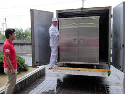 難民を助ける会では、福島第一原子力発電所の災害の影響で生徒・児童数が増えた鹿島区の学校に通う児童・生徒(約2,800名) を対象に、「野菜ジュース」と「お米」を提供しました。7月1日から22日まで、野菜ジュースは全児童・生徒に週2回提供、お米は毎日の給食 に使用する計2トンを支援しました。また、鹿島区の学校へ給食を配給する車両が不足していたため、8月23日からはレンタル車両を提供する支援をしています。