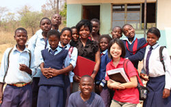チパパで活動するエイズ対策クラブの学生たちとザンビア駐在員の山井美香(前列右から2人目)