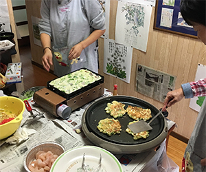 たこ焼きとお好み焼きのメニューは、「一人暮らしでは食べることがないので」と大好評(2018年10月15日、福島県伊達郡川俣町)