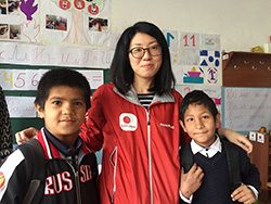 2番学校の学習支援室に通う子どもたちとAARの山根利江(中央)
