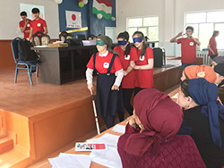 視覚障がいの体験学習に参加する5番学校のボランティアメンバー。AARが提供したお揃いのTシャツを着ています