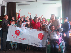 15番校の子どもたちと(前列左はAARの町村美紗 2019年3月18日)