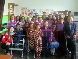 2番学校はこれまでに合計で46名の障がい児を受け入れており、これは拠点校の中で最多です。その背景には、障がい児を受け入れようという学校全体の姿勢と、学習支援室を担当するベテラン教員のオルゾグル先生とシャミグル先生の存在があります。両先生への子どもたちと保護者の信頼は厚く、先生方の授業を受ける子どもの顔は、いつも生き生きとしています。先生方の熱意と指導力により、子どもたちの読み書きや計算の能力は着実に向上しており、それに感動した保護者がほかの障がい児の保護者や市の教育委員会に子どもたちの成長ぶりを伝え、同校に通いたい児童が増える、という好循環が生まれています。