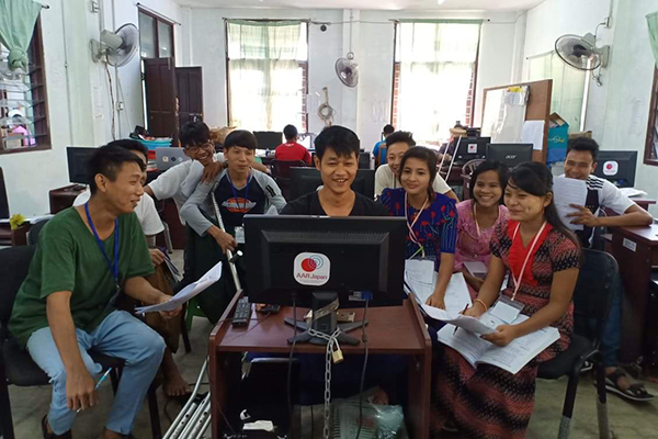 AARが運営する職業訓練校で学ぶ訓練生。障がい者を全国から無償で受け入れています(2019年、ミャンマー)