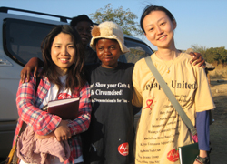 地元の若者によるエイズ啓発活動を支援しています。駐在員の河野洋(左)と永井萌子(右、2012年7月)