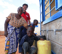 今まで2時間かかっていた水汲みが5分ですむようになると喜ぶ住民と当会駐在員の高城大吾